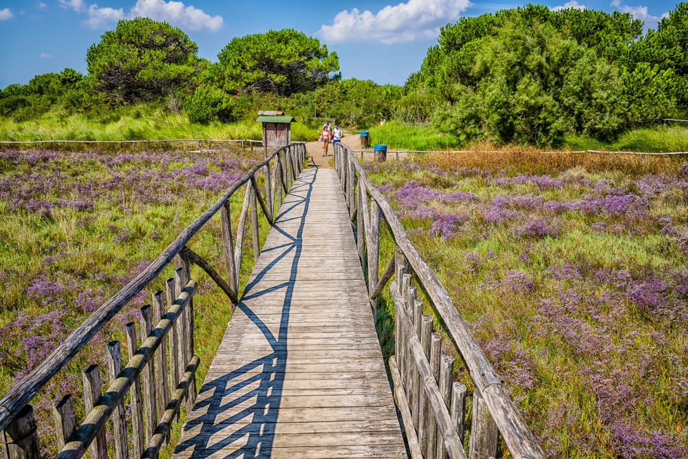 An 8 km long peninsula surrounded by water from the valleys and the Adriatic Sea, mostly covered by a dense and lush pine forest. The sea is perfect for long and pleasant swims, while the beach which is famous for being exceptionally long, is an immense expanse of extraordinarily clean fine golden sand. (Awarded in 2008 with the Delfino Blu Award by the ARPAV and in 2014 with 3 flags from Legambiente and Touring Club on the Blue Guide Programme).
